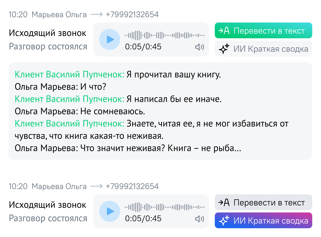 искусственный интеллект сам прослушает запись разговора, переведет в текст и сделает