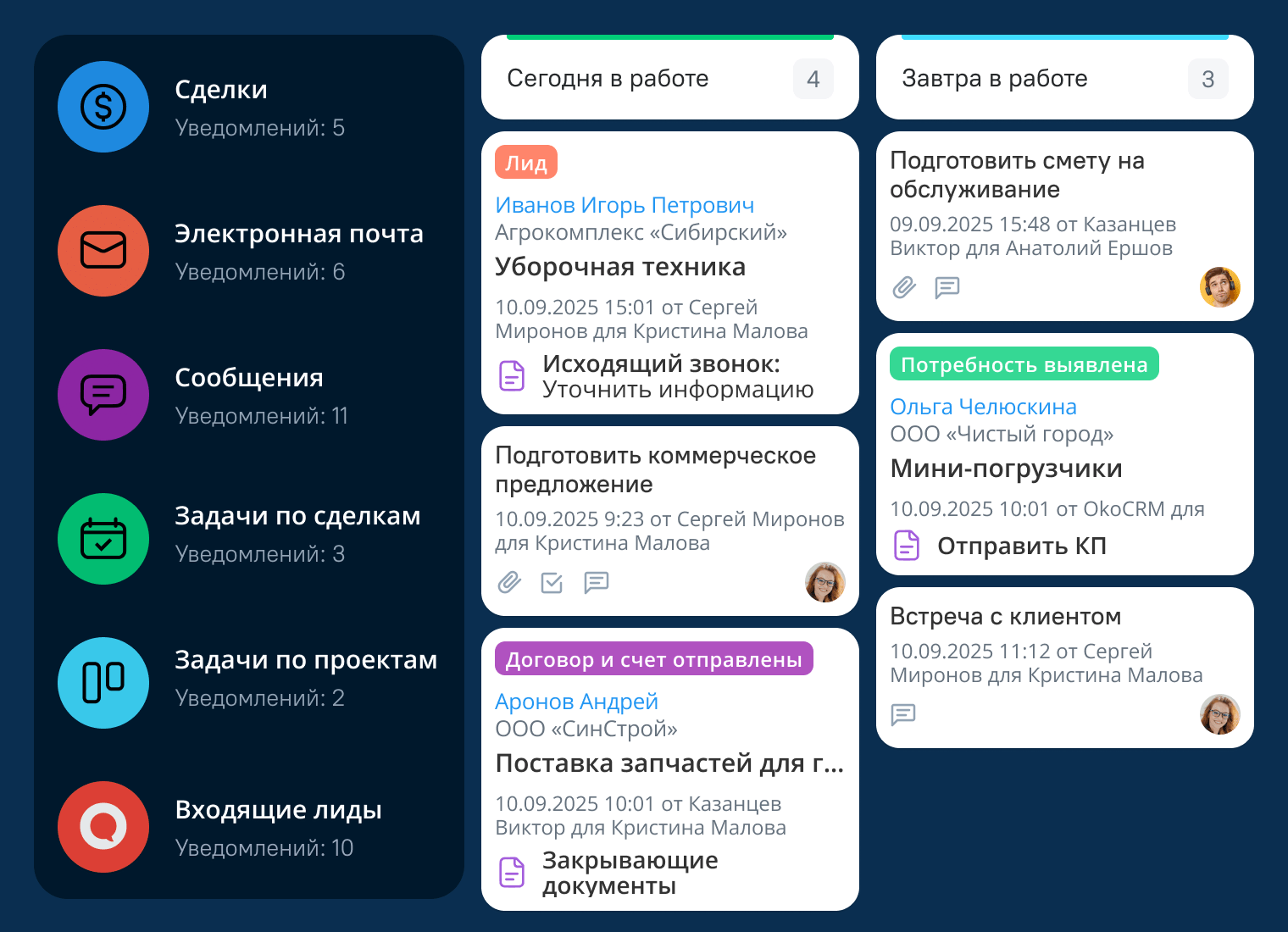 задачах. Система напомнит о звонке или письме, отправит уведомление и не даст потерять